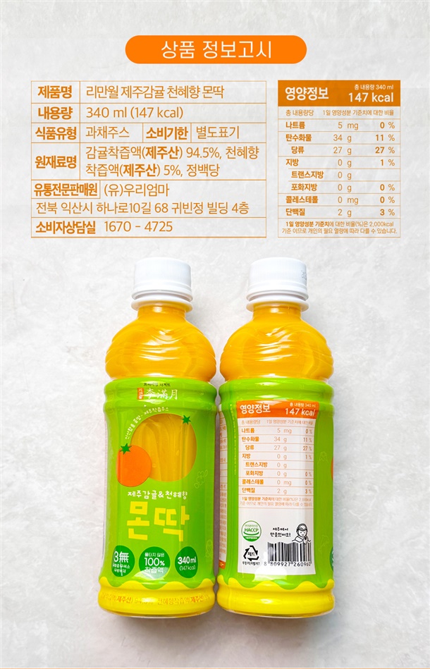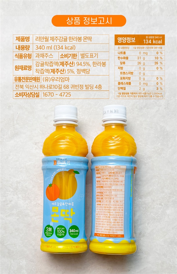제주도 한라봉 100% 착즙주스 / 제주도 천혜양 100% 착즙주스