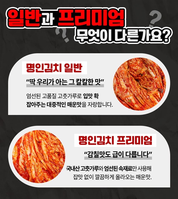 배추김치(일반) 중국산고춧가루 / 배추김치(프리미엄) 국내산고춧가루