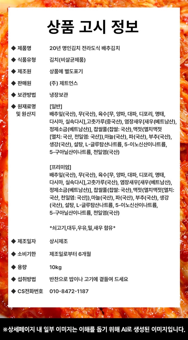 배추김치(일반) 10kg / 배추김치(프리미엄) 10kg
