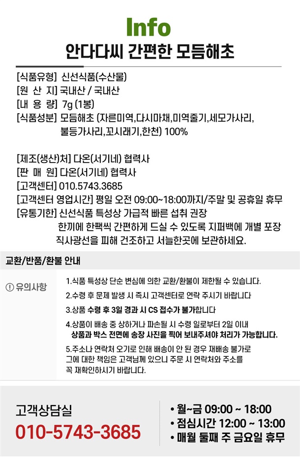 모듬해초(7g * 7개) 1세트 / 2세트 / 3세트