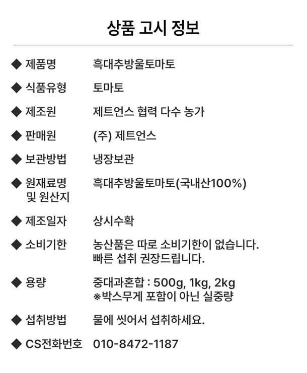 흑대추방울토마토 1kg / 2kg (중대과혼합)