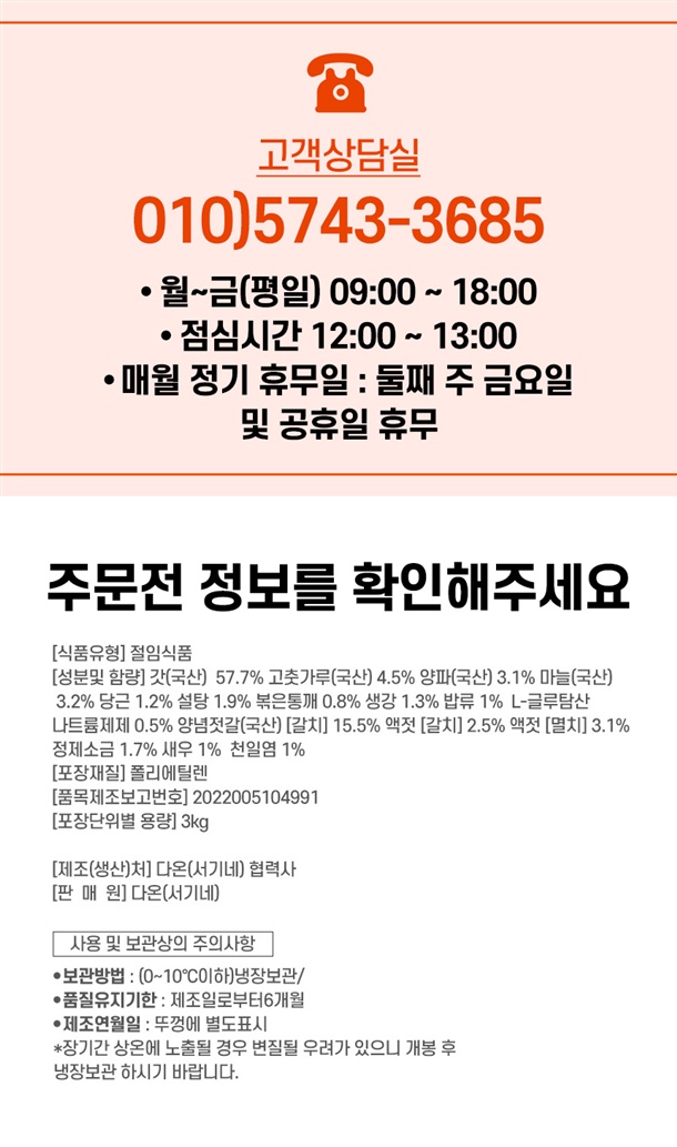 상시제조 / 신선식품으로 가능한 빨리 섭취를 권장