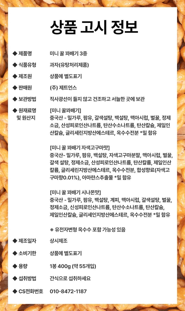미니꿀꽈배기 400g + 400g 덤증정! (1+1) (오리지널/시나몬/자색고구마)
