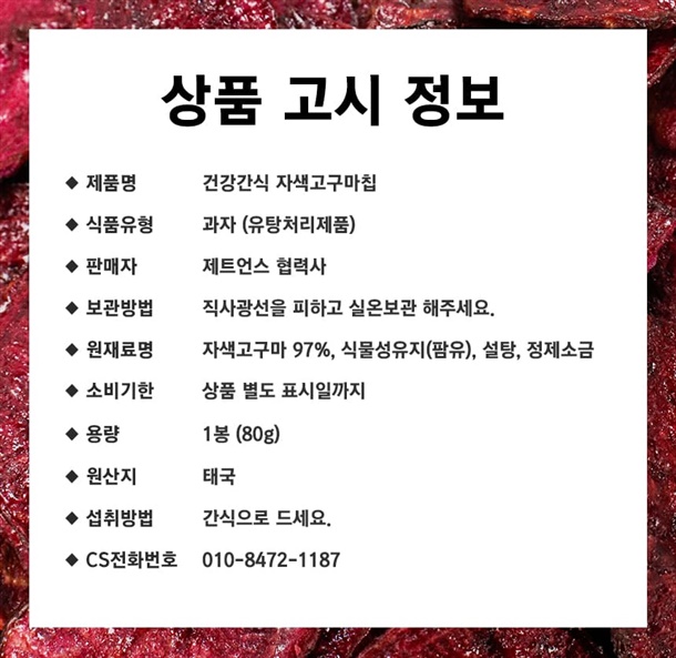 자색고구마 97%, 식물성유지(팜유), 설탕, 정제소금