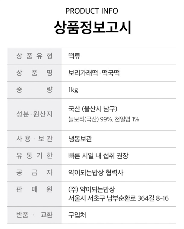 보리가래떡 1Kg / 보리떡국떡 1Kg