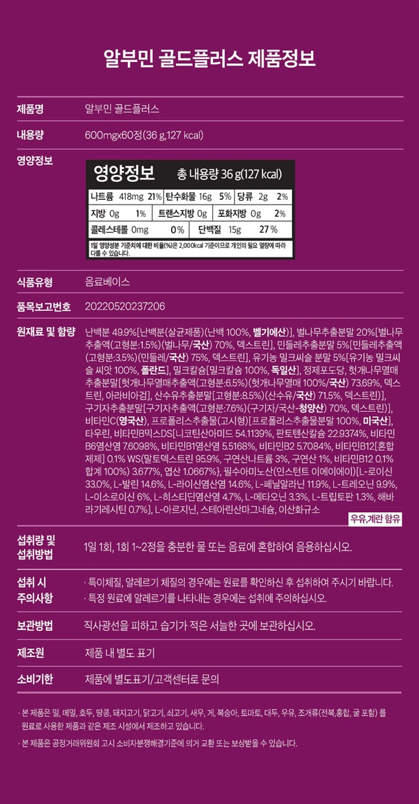 알부민 골드플러스 600mg×60정