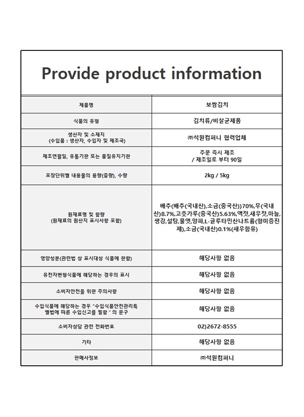 보쌈겉절이 2kg / 5kg