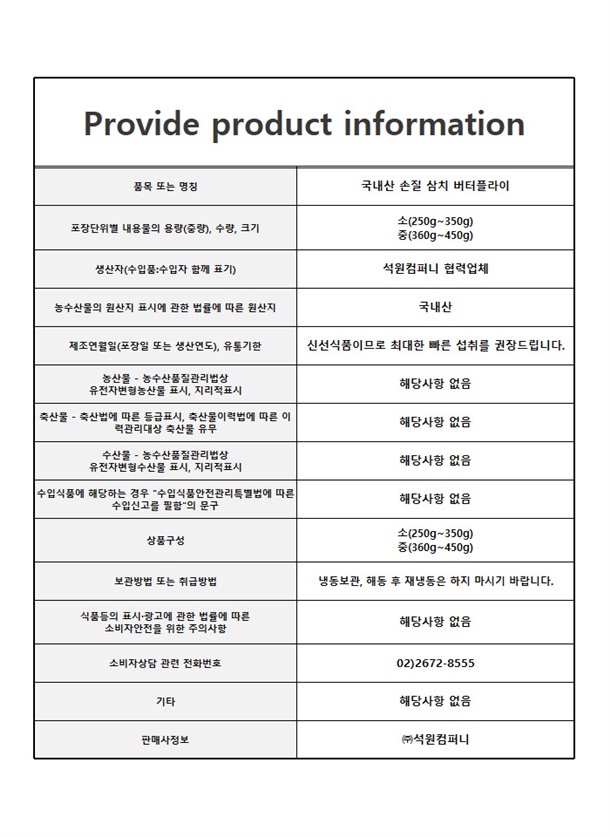 신선식품이므로 최대한 빠른 섭취를 권장드립니다.