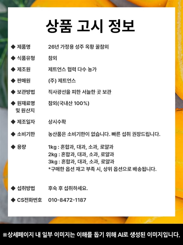성주 옥황 꿀참외 2kg / 3kg (대과/소과/로얄과)