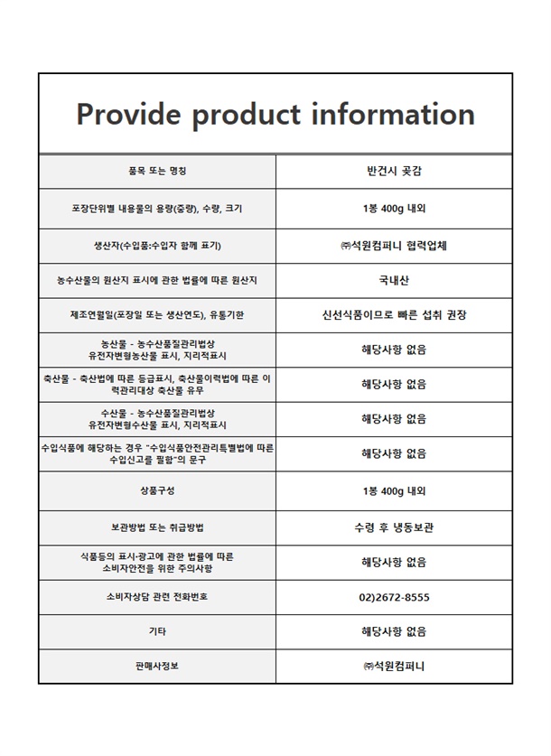 반건시곶감 1팩 / 2팩 (1팩 400g 내외)
