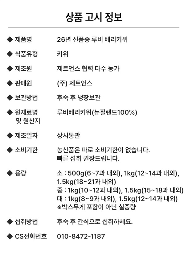신품종 루비 베리키위 1kg/1.5kg (소/중/대)
