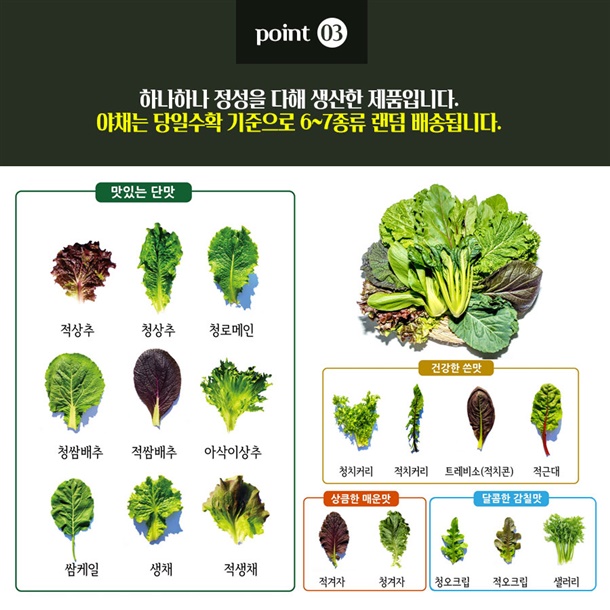 당일 수확 기준으로 6~7종류 랜덤 발송 (종류는 상세페이지 참조)