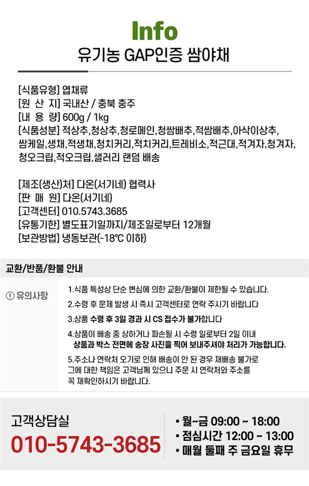 쌈야채 600g / 1kg