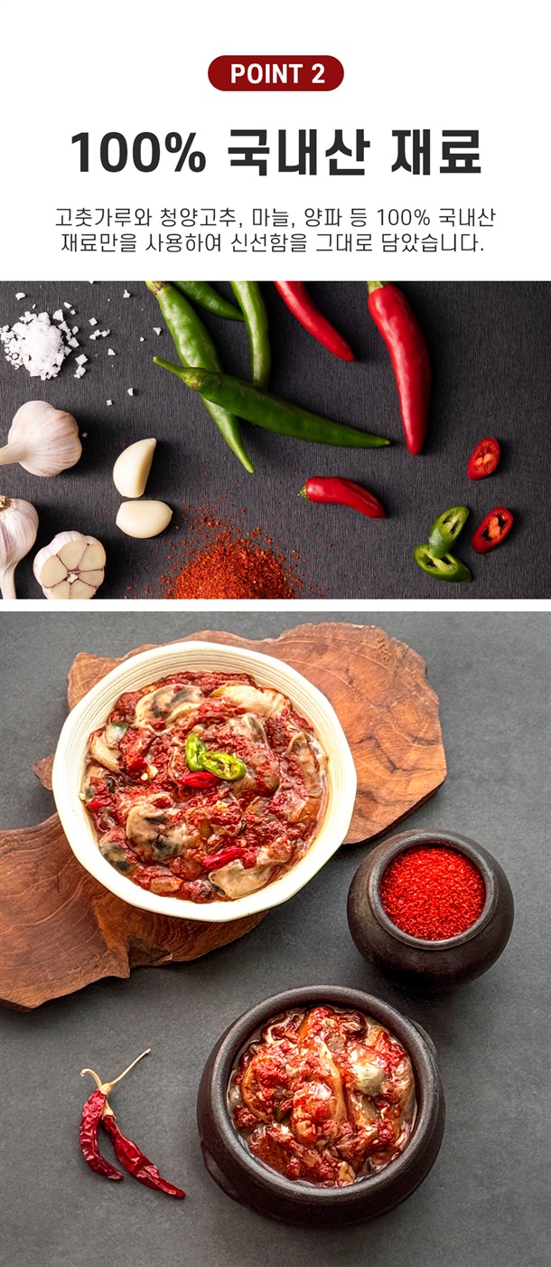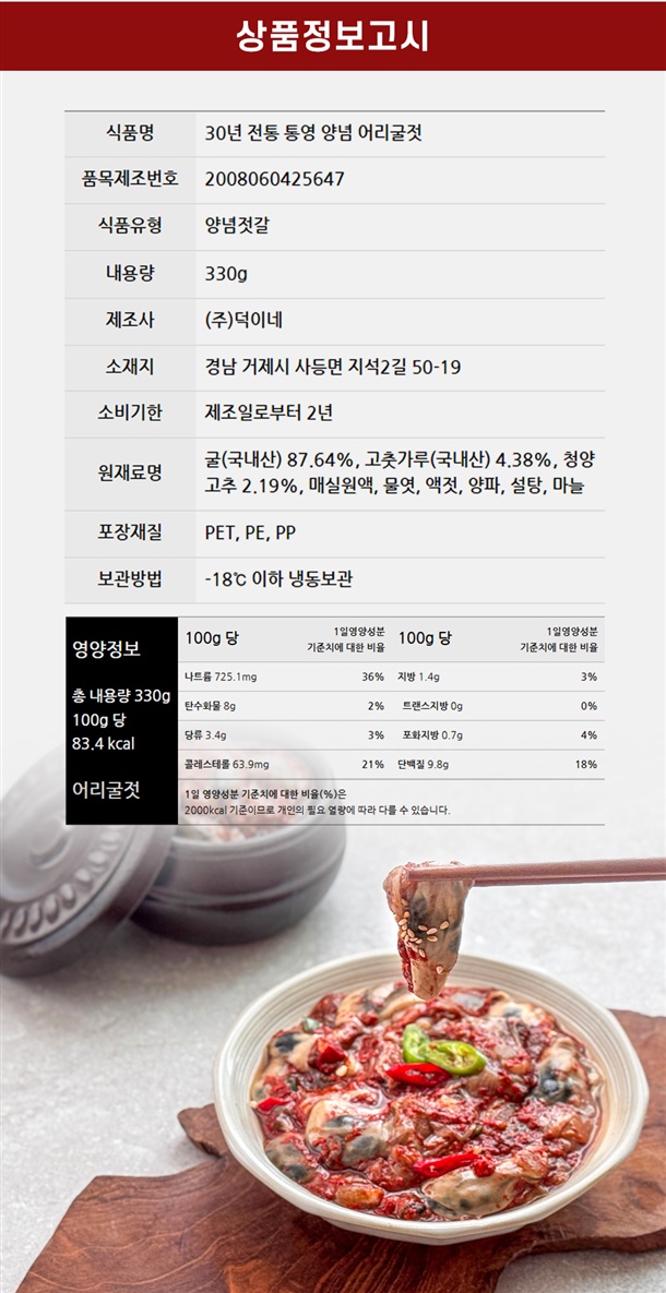 굴(국내산)87.64%, 고춧가루(국내산)4.38%, 청양고추2.19%