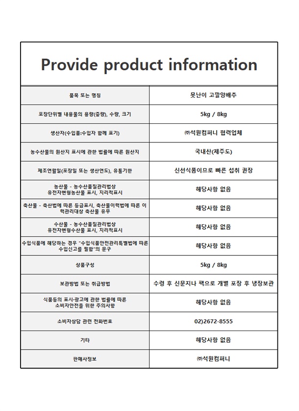 못난이 고깔양배추 5kg / 8kg