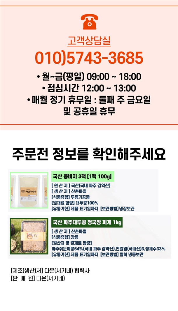 상시제조 / 청국장 3개월(냉동보관) , 콩비지 1년(냉장,동보관)