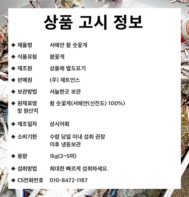서해안 숫꽃게 1KG(3~5미)