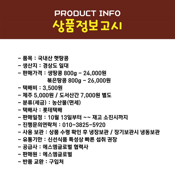 생땅콩은 주문후 소분 / 볶은땅콩은 주문후 당일 볶아서 바로 발송