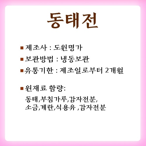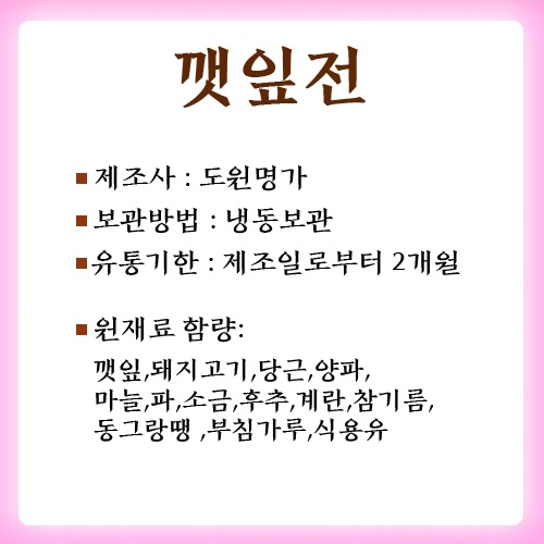 깻잎전 / 동그랑땡 / 동태전 / 꼬지전 / 새우전
