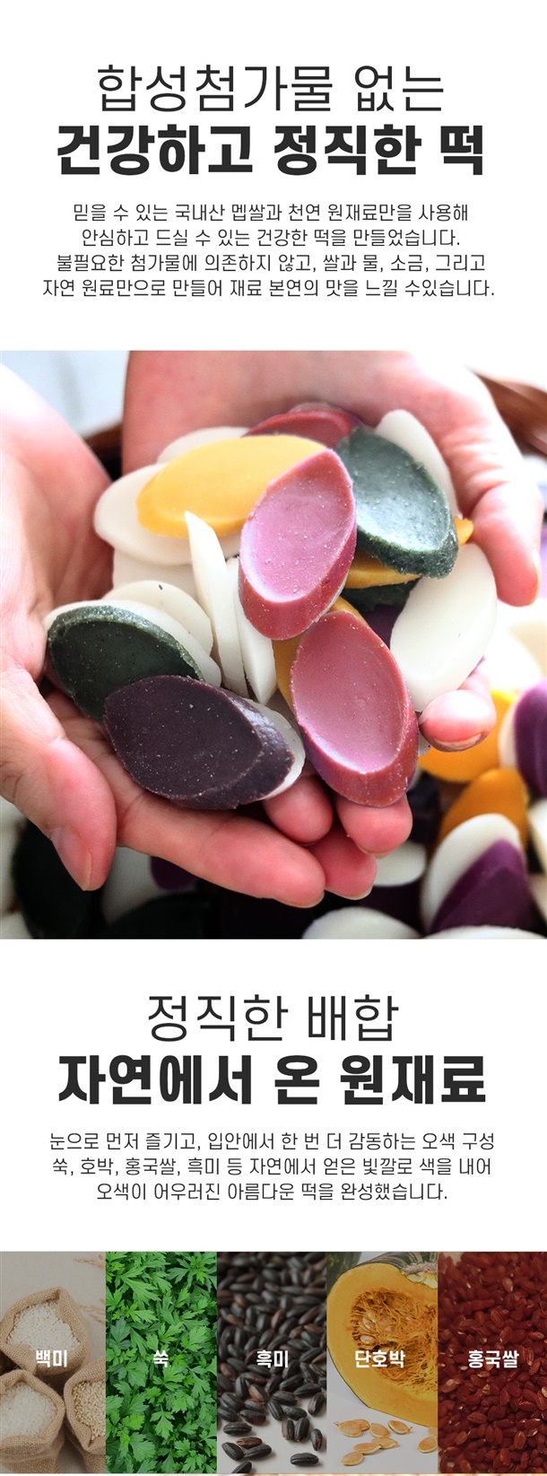 쌀:국내산/ 쑥 ,흑미 ,자색고구마 :국내산 /단호박 :뉴질랜드/천일염:국내산