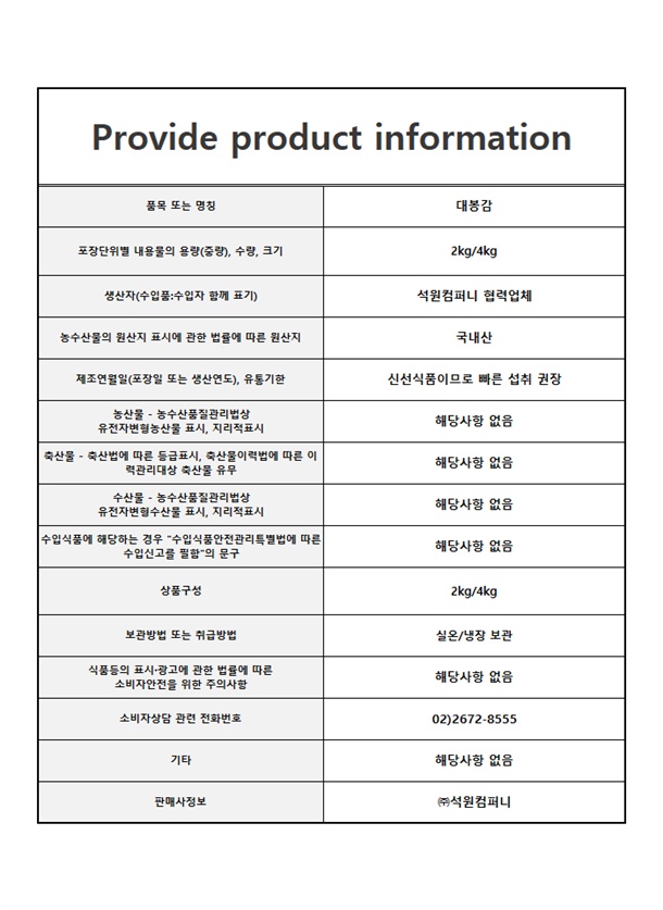 대봉감 2kg / 4kg (L/2L)