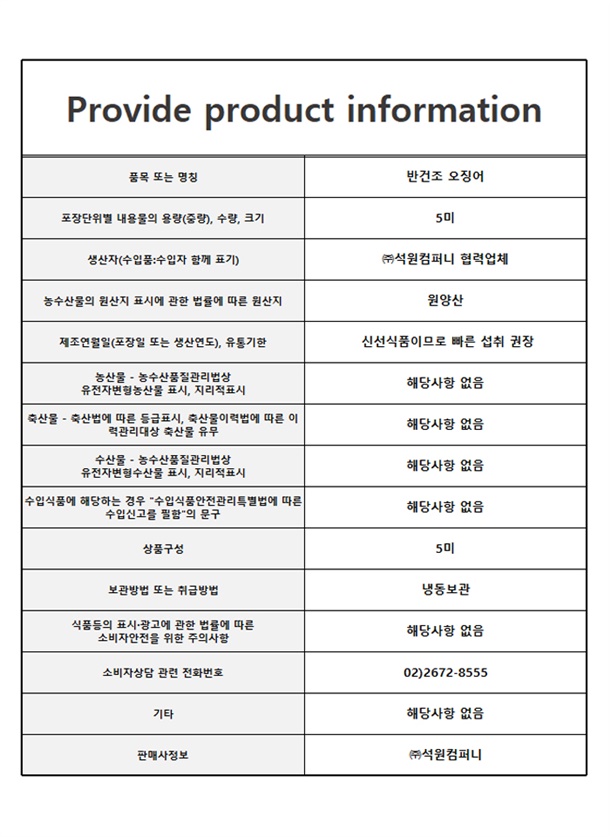 반건조오징어 5미(소소/소/중/대/특대/특특대)
